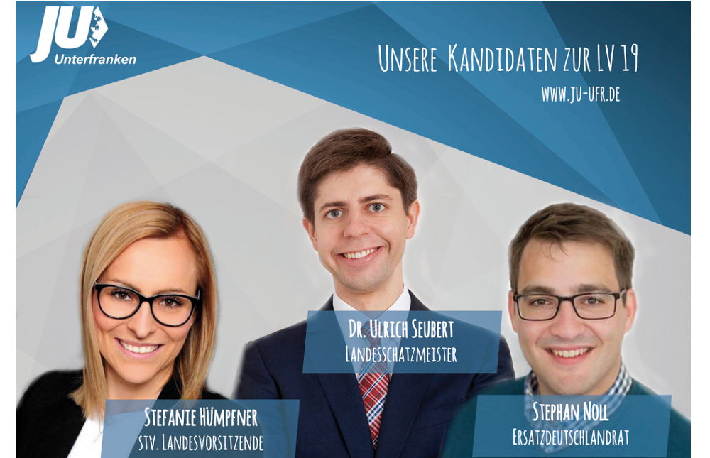 Oberschwarzach/Kitzingen (juufr) „Mit Stefanie Hümpfner aus Königsberg und Dr. Ulrich Seubert aus Altertheim stellen wir aktuell 25 Prozent des achtköpfigen Landesvorstands der Jungen Union Bayern. Dass dies so bleiben soll ist für uns als vergleichsweise kleinen Verband ein Erfolg und spricht für die gute Arbeit der beiden auf Landesebene“, so JU-Bezirksvorsitzender Daniel Nagl (Kitzingen) bei der konstituierenden Sitzung des JU-Bezirksausschusses in Oberschwarzach, Kreis Schweinfurt. Einstimmig designierten die jungen Christsozialen Hümpfner als stv. Landesvorsitzende und Dr. Seubert zum Landesschatzmeister. Kreisrat Stephan Noll aus Alzenau soll weiterhin als Ersatzdeutschlandrat fungieren, Winfried Geuß (HAS) und Pascal Schwing (SW) wurden zu Bezirksgeschäftsführern bestellt, Pascal Häusinger (WÜ) und Andreas Türk (NES) als Arbeitskreisleiter „Europa & ASP“ bzw. „LuF und Umwelt“ ebenso wie StM Judith Gerlach (AB) in den Ausschuss kooptiert.